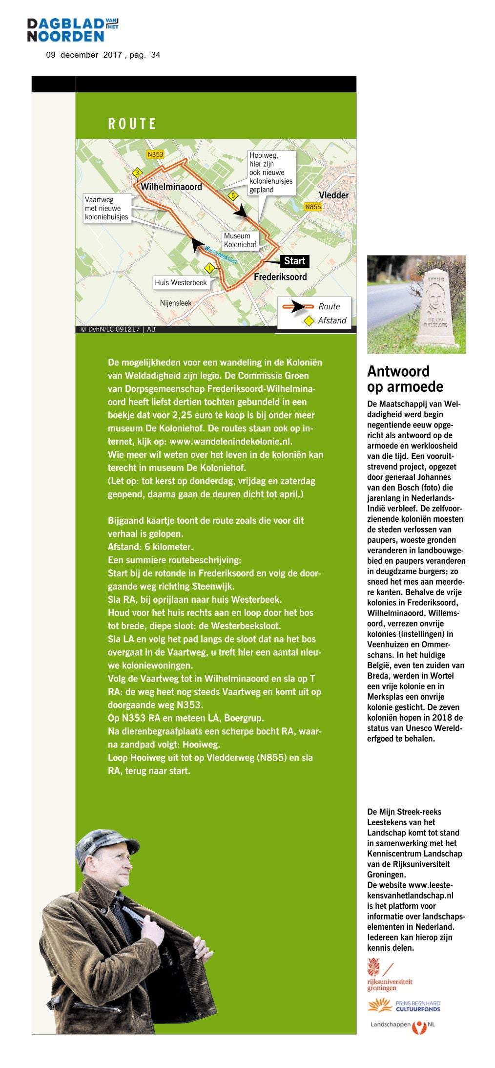 In 2017 publiceerde het Dagblad van het Noorden een artikel over de koloniën van weldadigheid. Daarbij is ook een wandelroute gevoegd. Ook die kan je lopen. Bekijk het artikel maar eens.